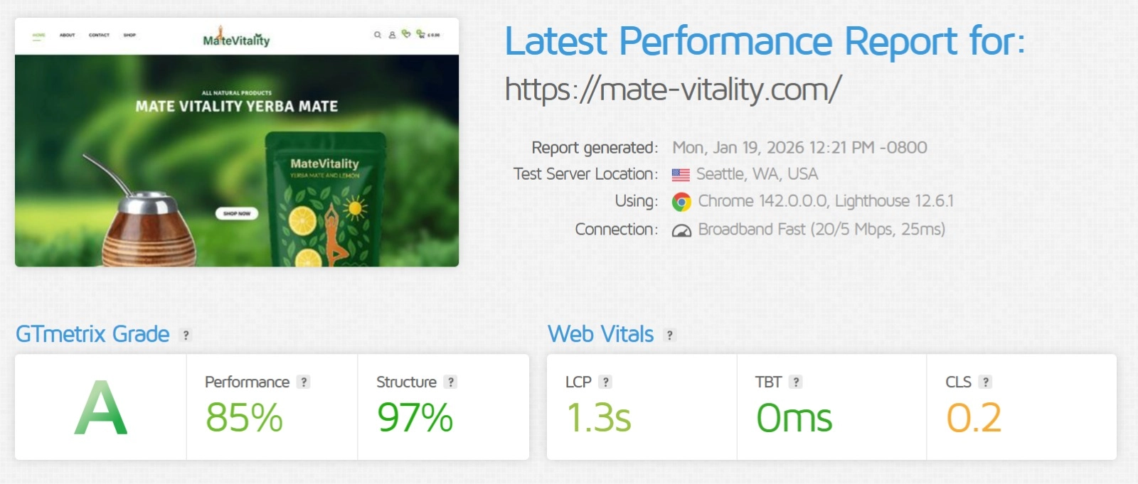 From a failing F grade to an A full redesign and speed overhaul delivered in under a week for a UK-based health & wellness brand.